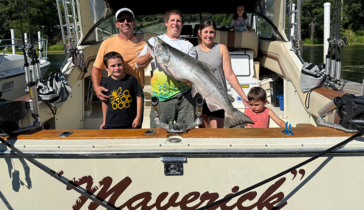YOUR success." Since 1998 "Maverick" Sportfishing has been raising the bar annually for charter fisherman across Lake Ontario. Look around my site. Other charter boats do duplicate what has been written, but they cannot duplicate the results on the water at days end. "Maverick" Sportfishing is now booking prime SPRING dates on the World Famous Niagara River, SUMMER and FALL dates on the "fishy" waters of Oak Orchard Creek, where the Coho's won't stop biting, big Steelhead's are jumping into the boat, big Browns that won't come off the bottom and Strong Kings/Chinook are burning up your reels. Don't miss your chance to get in on the action. "HEART POUNDING KING SALMON ACTION" You can reserve online, call or e-mail to go fishing today!!! So, if you love fishing, or you're just looking for an excuse to get out on the water and have some fun with your friends, family, co-workers; we have an experience just for you! "Maverick" Sportfishing Charters will be fishing Lake Ontario for Chinook/King, Coho Salmon, Rainbow/Steelhead and Brown Trout in April, May, June, July, August, September and October. Prime dates won't last long - book now for your prime dates - or just drop us a line if you have any questions at all - 585-749-2073. |